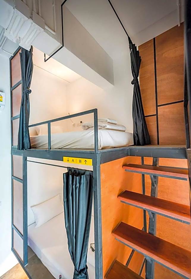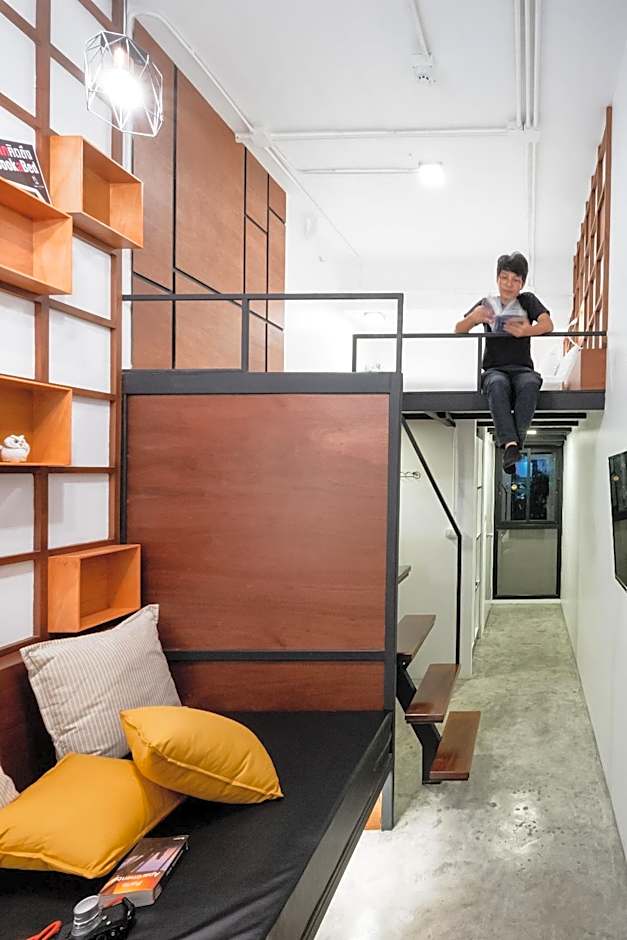 This bed in dormitory features a toaster, microwave and electric kettle.